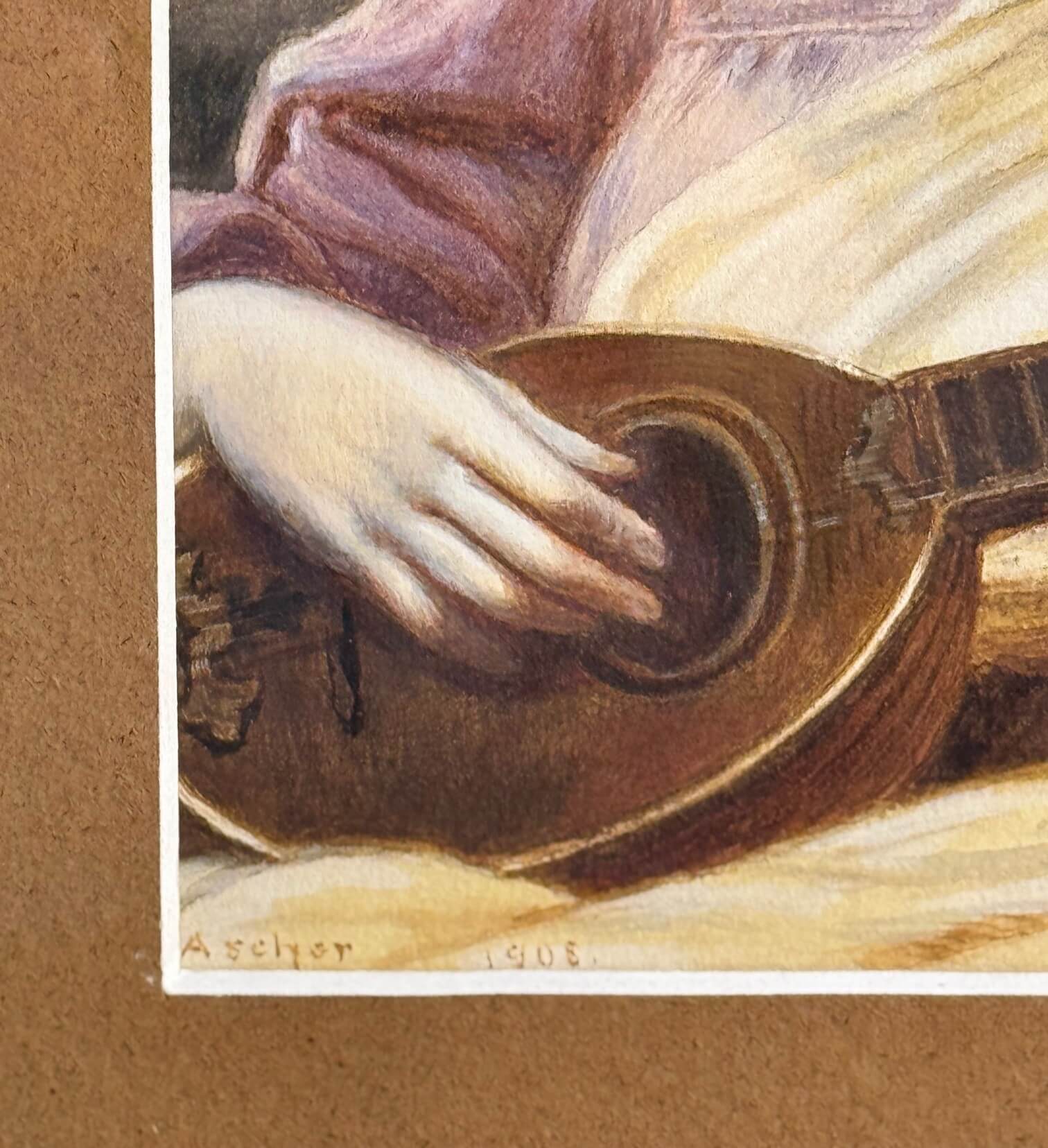 - semnată și datată pe partea stânga jos „ASCHER 1908”