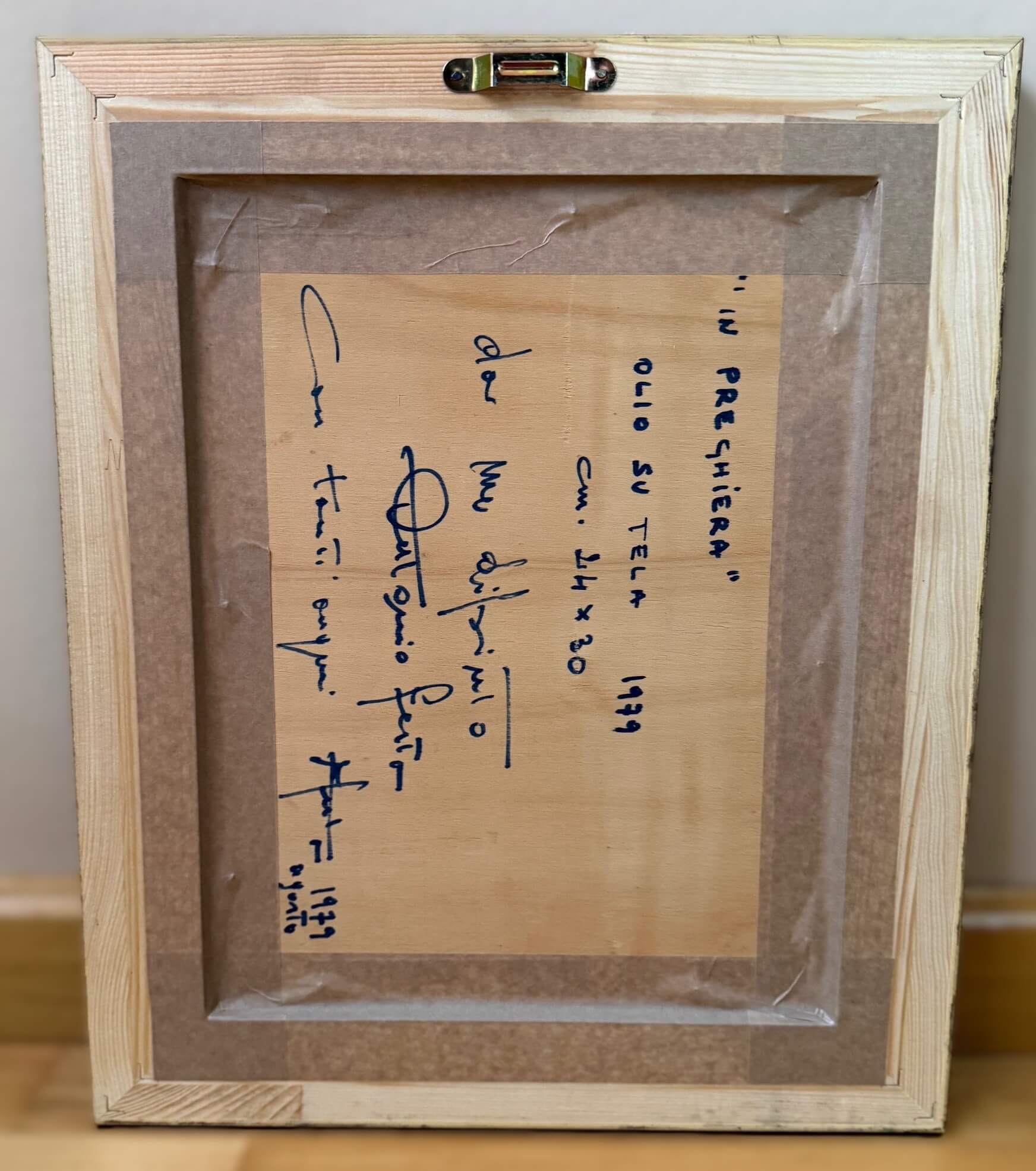 - semnată pe partea dreapta jos, pe verso sunt înscrise de către artist titlul și data