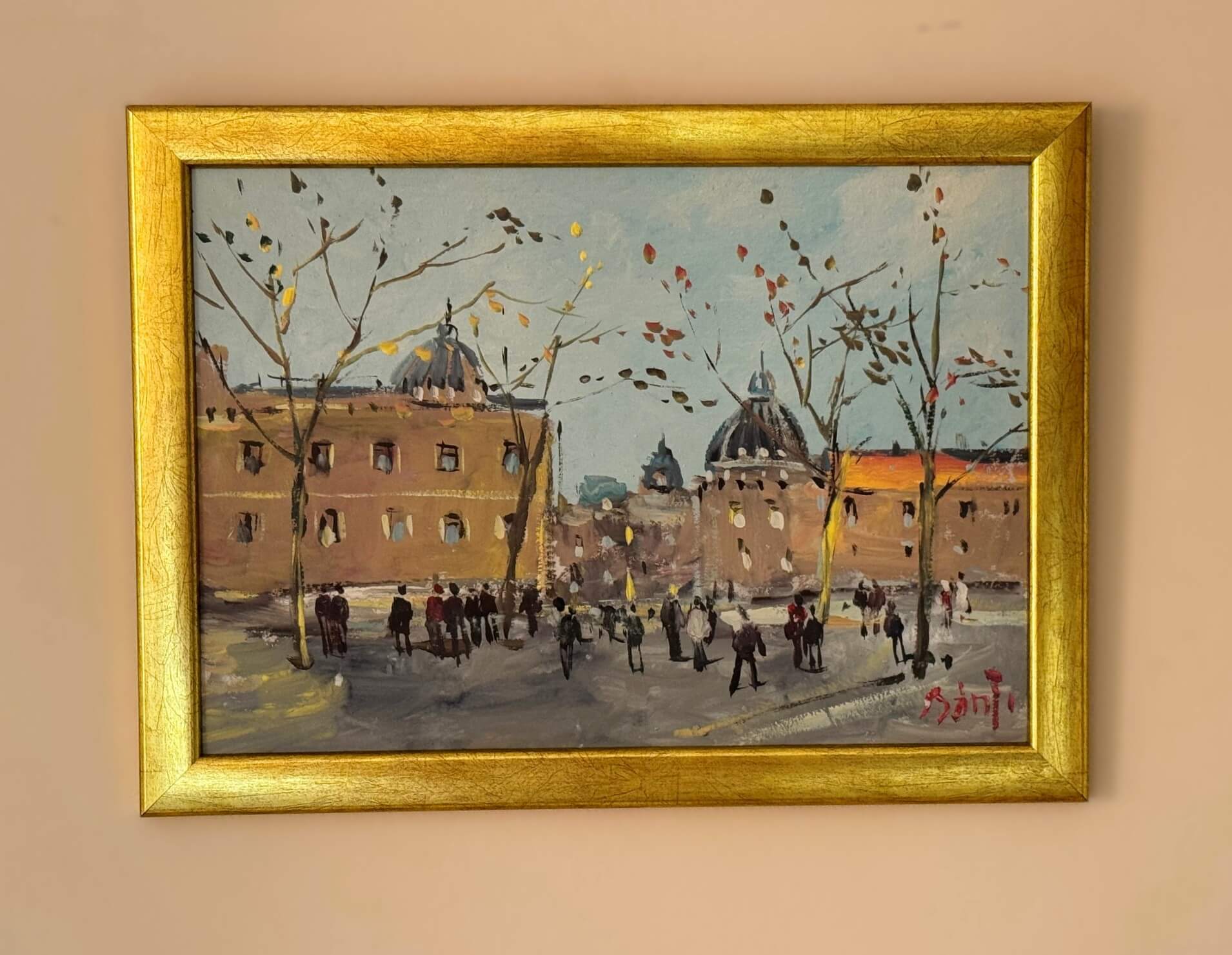 - cu ramă nouă aurie din lemn de esență tare
